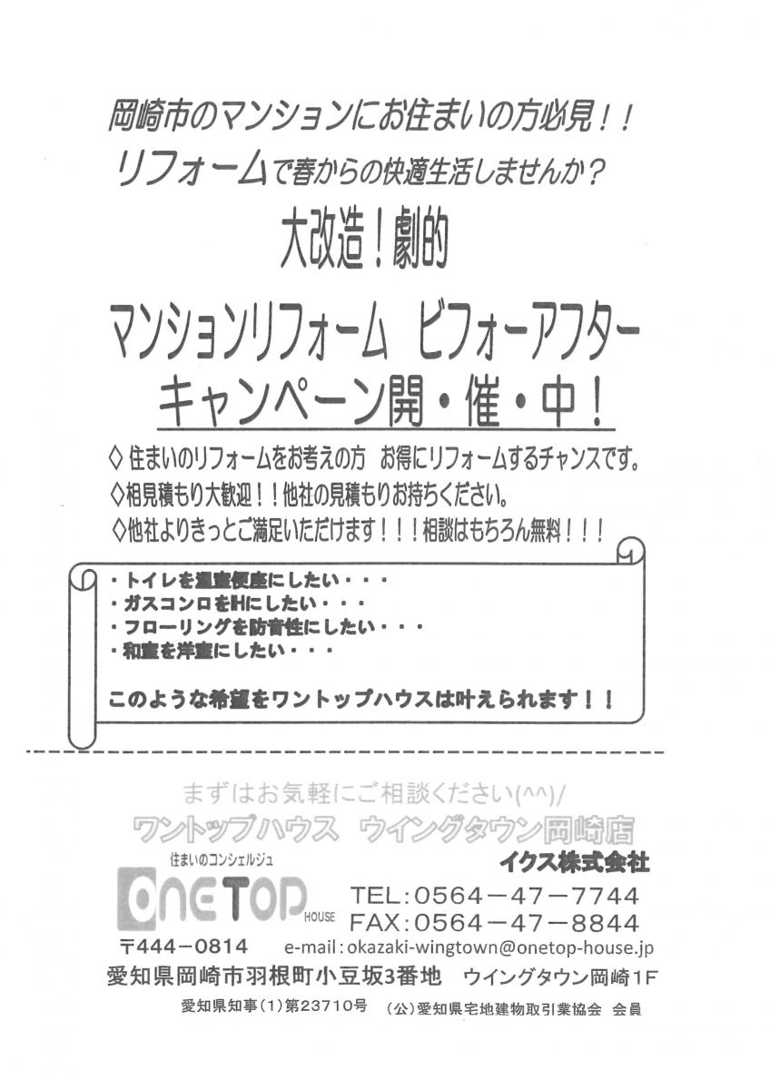 岡崎市のマンションにおすまいの方、リフォームキャンペーン