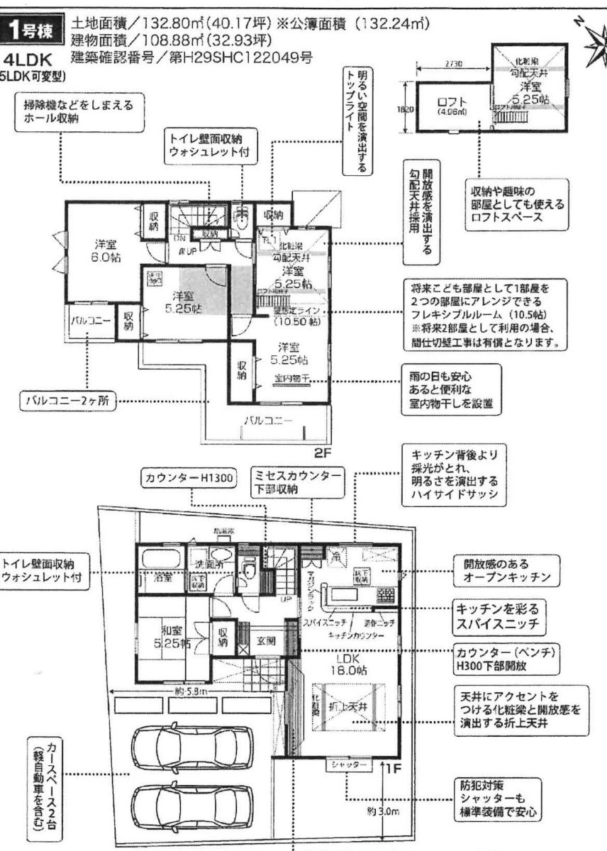 大型収納下駄箱(ミラー付き)・3口コンロ・床下収納・1F、2Fウォシュレット