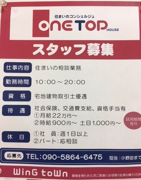 ワントップハウスウイングタウン岡崎店では、私たちの仲間になってくれるスタッフ募集しています