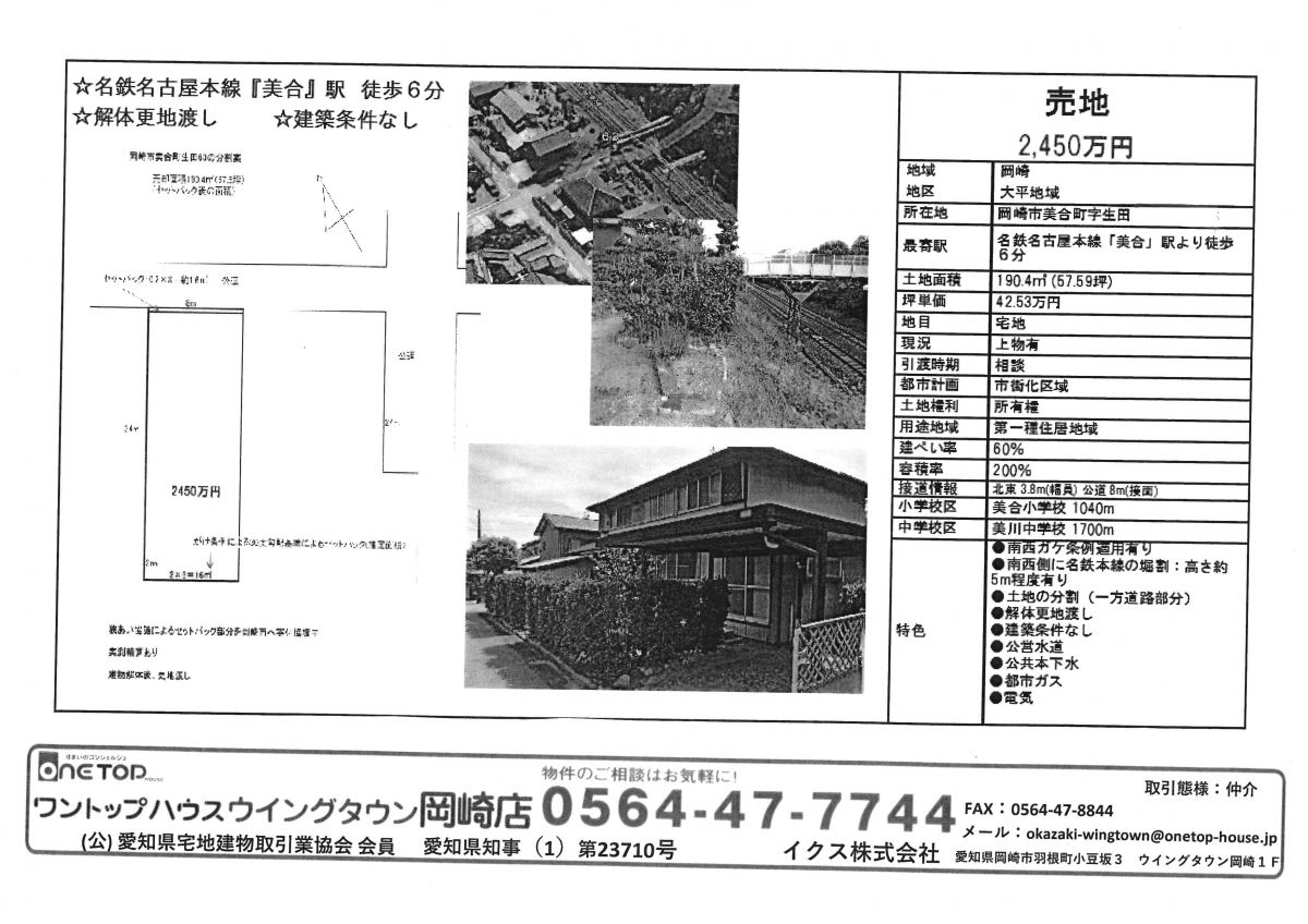・岡崎市美合町生田の売地のご紹介をいたします。