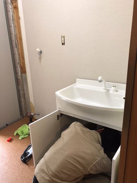 洗面化粧台設置作業