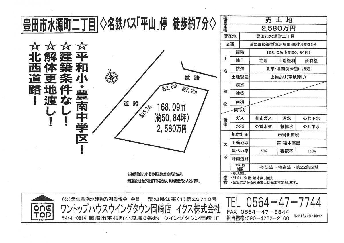 土地現況 :上物あり(更地渡し)