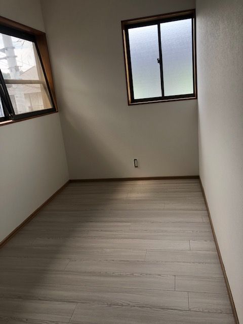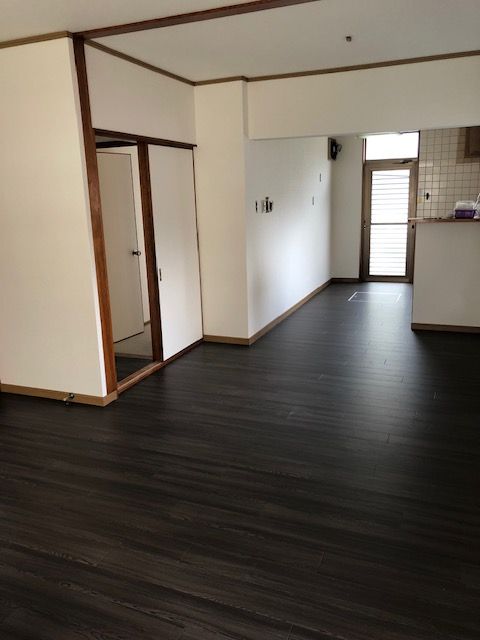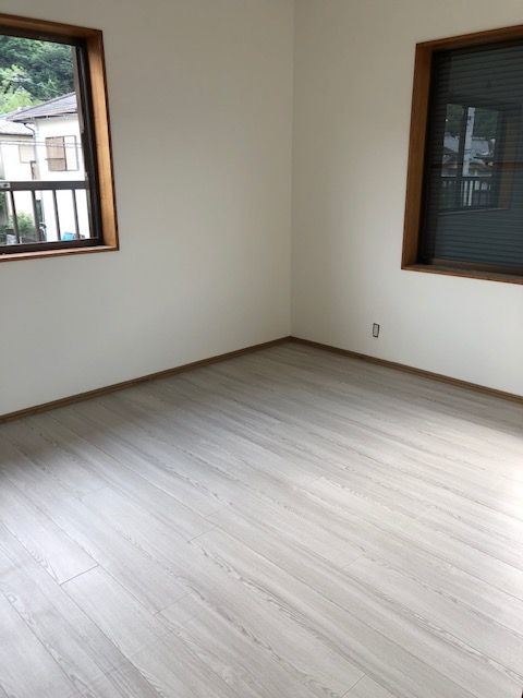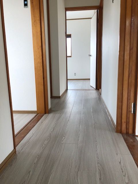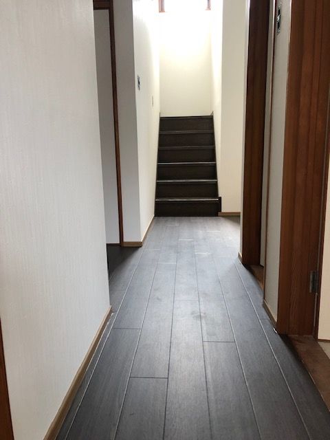 1Fは濃茶で、2Fは白っぽい木目にして貼り分けました。
