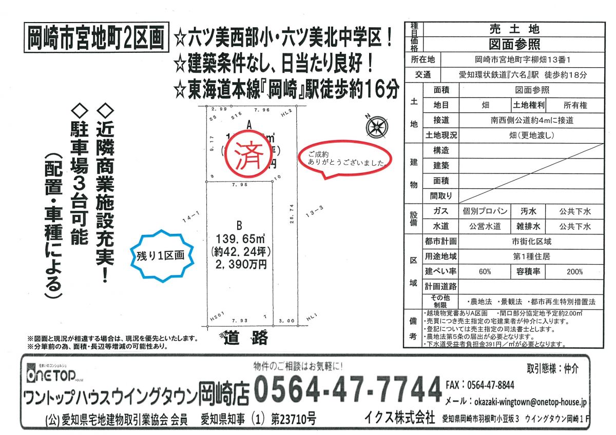 岡崎市宮地町のA区画がご成約となりました