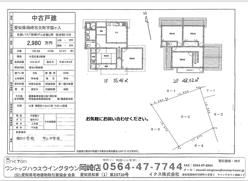 ・土地面積190.66㎡(公簿)(約57.67坪)建物面積103.50㎡(約31.30坪)
