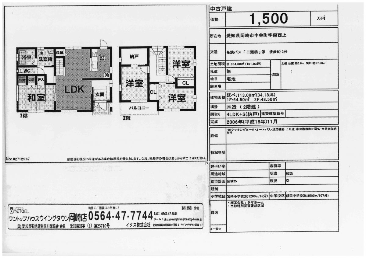 ワントップハウスウイングタウン岡崎店から新着物件のご紹介です