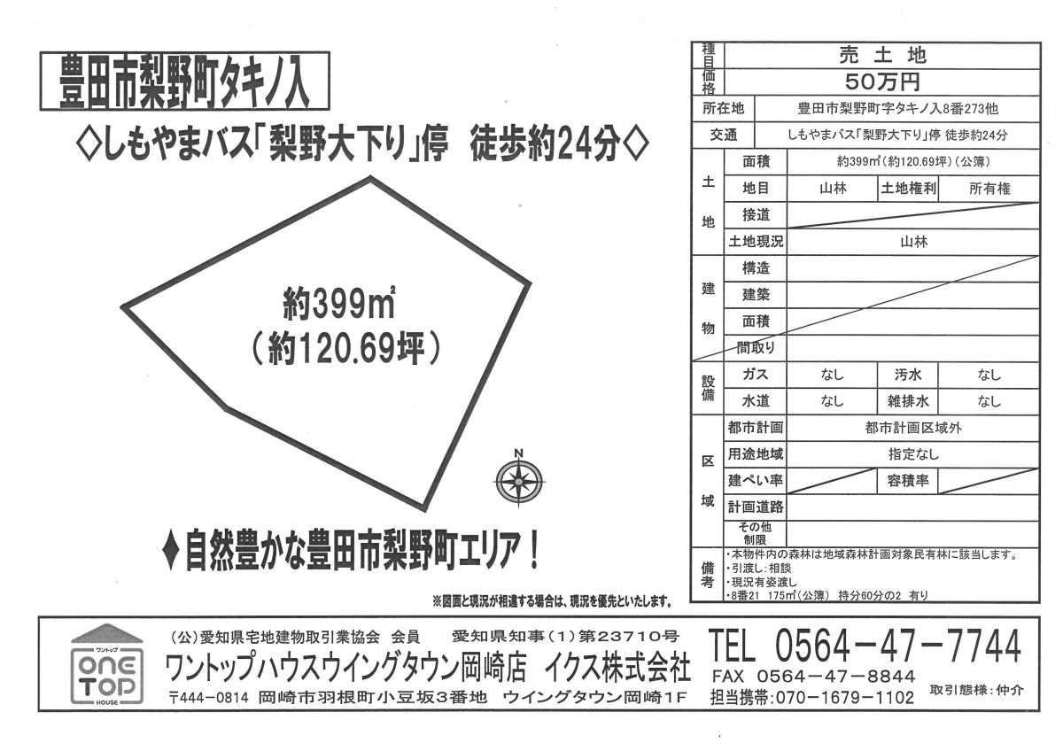 今回ご紹介するのは、 豊田市梨野町にある50万円の売土地です。