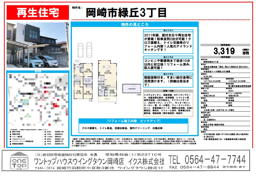 ワントップハウスウイングタウン岡崎店から新着物件のご紹介です