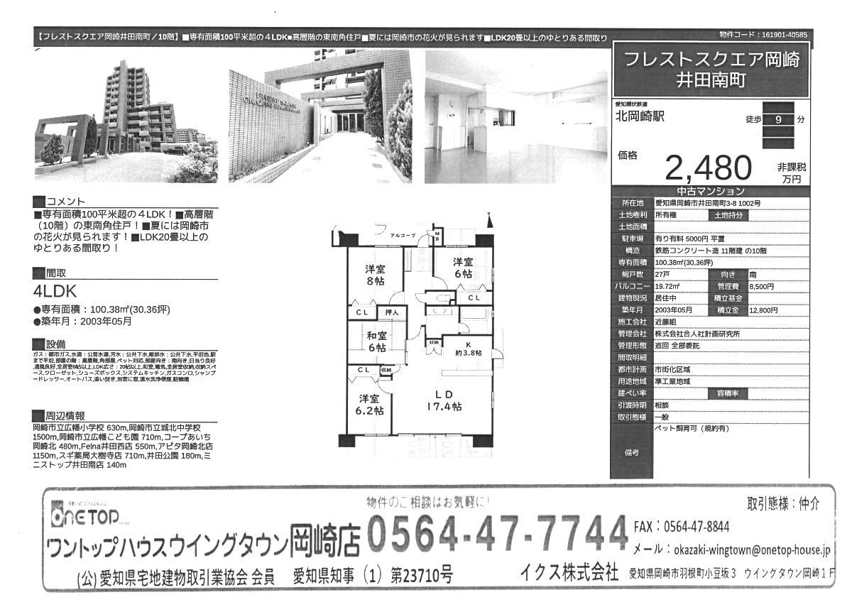 ワントップハウスウイングタウン岡崎店からおすすめ物件のご紹介です