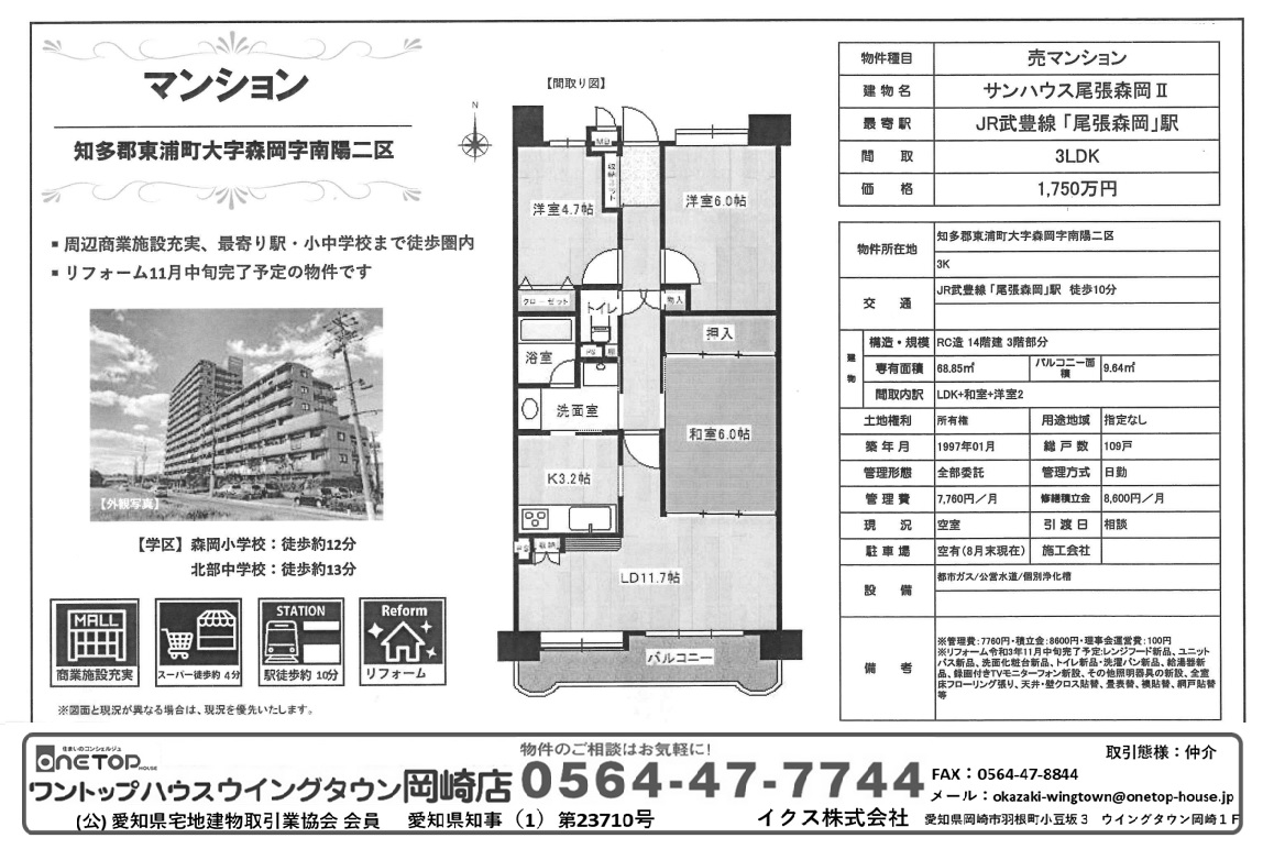 安城市 岡崎市 豊田市 刈谷市 幸田町 不動産 ワントップハウス ウイングタウン 土地 戸建 売買 賃貸 新築 中古 査定 相談無料 老人ホーム相談 手数料無料 愛知県 知多郡東浦和 中古マンション 売マンション 周辺商業施設充実 森岡小学校 北部中学校