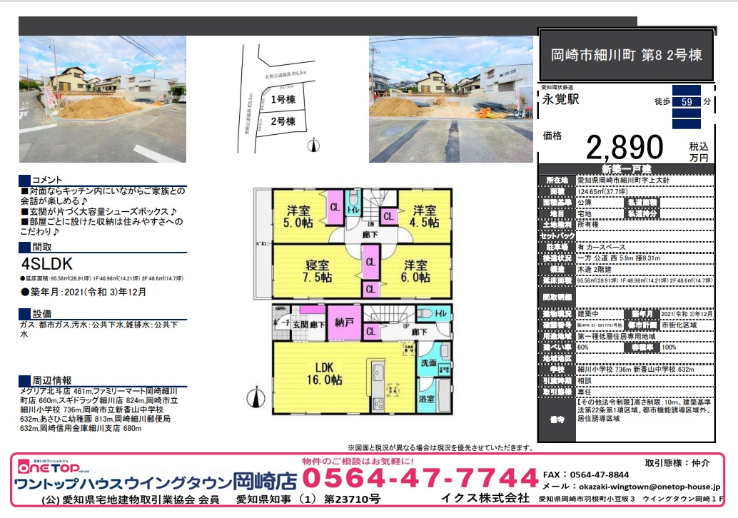 安城市 岡崎市 豊田市 刈谷市 幸田町 不動産 ワントップハウス ウイングタウン 土地 戸建 売買 賃貸 新築 中古 査定 相談無料 老人ホーム相談 手数料無料 岡崎市不動産 岡崎市戸建 細川町 愛知環状鉄道 永覚駅 細川小学校 新香山中学校