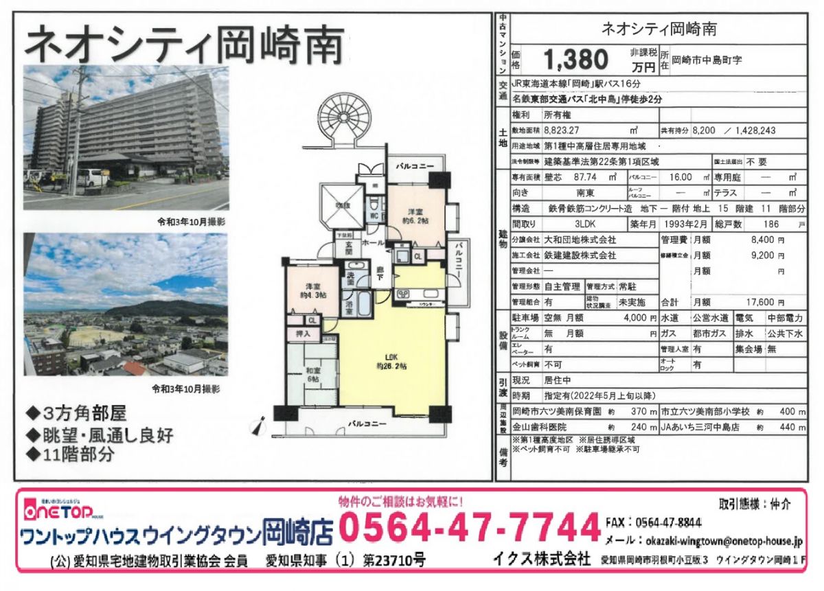 安城市 岡崎市 豊田市 刈谷市 幸田町 不動産 ワントップハウス ウイングタウン 土地 戸建 売買 賃貸 新築 中古 査定 相談無料 老人ホーム相談 手数料無料 岡崎市不動産 岡崎市戸建 岡崎市マンション 岡崎市土地 JR東海道本線 岡崎駅 六ッ美南部小学校