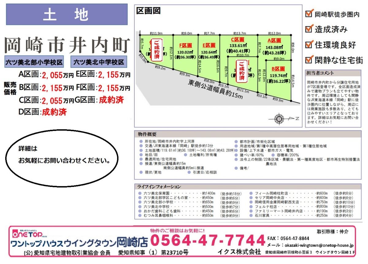 安城市 岡崎市 豊田市 刈谷市 幸田町 不動産 ワントップハウス ウイングタウン 土地 戸建 売買 賃貸 新築 中古 査定 相談無料 老人ホーム相談 手数料無料 岡崎市不動産 岡崎市井内町 建築条件なし 六ッ美北部小学校 六ッ美北中学校