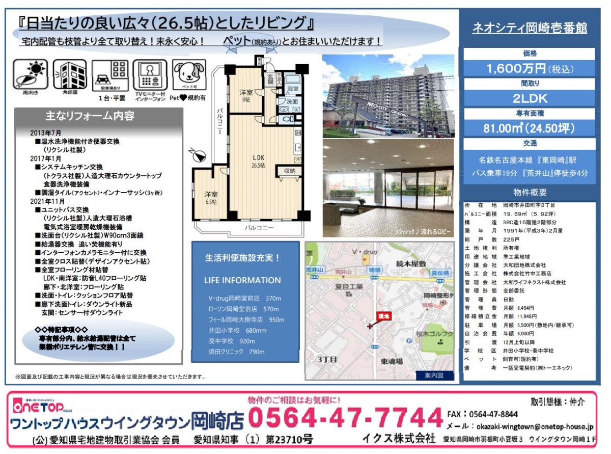 安城市 岡崎市 豊田市 刈谷市 幸田町 不動産 ワントップハウス ウイングタウン 土地 戸建 売買 賃貸 新築 中古 査定 相談無料 老人ホーム相談 手数料無料 岡崎市不動産 岡崎市戸建 岡崎市マンション 井田小学校 葵中学校 ペット飼育可能のマンション