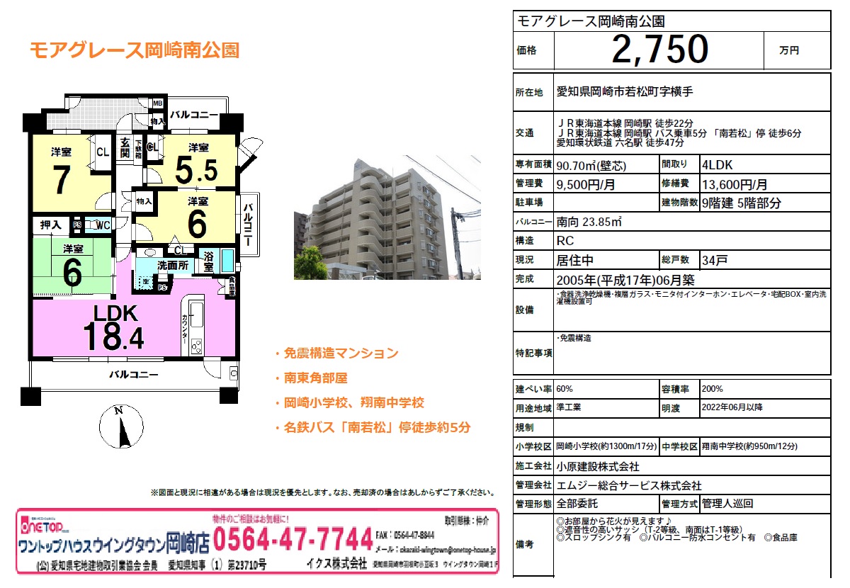 安城市 岡崎市 豊田市 刈谷市 幸田町 不動産 ワントップハウス ウイングタウン 土地 戸建 売買 賃貸 新築 中古 査定 相談無料 老人ホーム相談 手数料無料 岡崎市不動産 岡崎市戸建 岡崎市マンション モアグレース岡崎南公園 岡崎小学校 翔南中学校