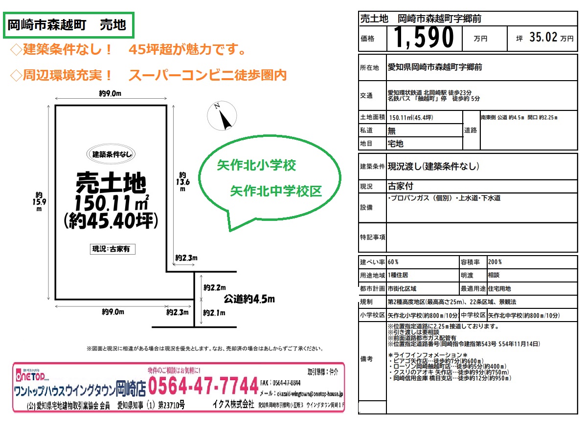 安城市 岡崎市 豊田市 刈谷市 幸田町 不動産 不動産仲介 不動産会社 ワントップハウス 不動産仲介 不動産営業 不動産売却 不動産屋 ウイングタウン 土地 戸建 売買 売買物件 媒介 賃貸 新築 中古 築浅物件 土地探し 査定 土地購入 売却相談 相談無料 老人ホーム相談 手数料無料 岡崎市土地紹介 岡崎市不動産 岡崎市新築 建売 築浅 築浅物件 築浅マンション 岡崎市新築戸建 岡崎市新築戸建て 岡崎市中古戸建 岡崎市中古戸建て 岡崎市中古マンション 岡崎市築浅マンション 岡崎市森越町 建築条件なし 矢作北小学校 矢作北中学校