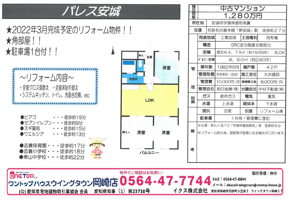 安城市 岡崎市 豊田市 刈谷市 幸田町 不動産 不動産仲介 不動産会社 ワントップハウス 不動産仲介 不動産営業 不動産売却 不動産屋 ウイングタウン 土地 戸建 売買 売買物件 媒介 賃貸 新築 中古 土地探し 査定 土地購入 売却相談 相談無料 老人ホーム相談 建築条件なし 土地紹介 岡崎市不動産 岡崎市新築 建売 築浅 築浅物件 築浅マンション 新築戸建 新築戸建て 中古戸建 中古戸建て 中古マンション 築浅マンション 手数料無料 安城市マンション パレス安城