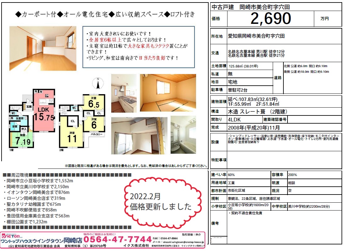 安城市 岡崎市 豊田市 刈谷市 幸田町 不動産 不動産仲介 不動産会社 ワントップハウス 不動産仲介 不動産営業 不動産売却 不動産屋 ウイングタウン 土地 戸建 売買 売買物件 媒介 賃貸 新築 中古 土地探し 査定 土地購入 売却相談 相談無料 老人ホーム相談 建築条件なし 土地紹介 岡崎市不動産 岡崎市新築 建売 築浅 築浅物件 築浅マンション 新築戸建 新築戸建て 中古戸建 中古戸建て 中古マンション 築浅マンション 手数料無料 岡崎市美合町中古戸建 小豆坂小学校 美川中学校