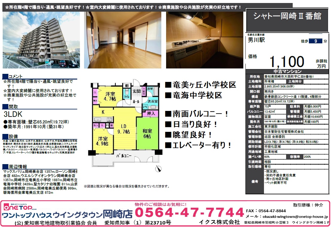安城市 岡崎市 豊田市 刈谷市 幸田町 不動産 不動産仲介 不動産会社 ワントップハウス 不動産仲介 不動産営業 不動産売却 不動産屋 ウイングタウン 土地 戸建 売買 売買物件 媒介 賃貸 新築 中古 築浅物件 土地探し 査定 土地購入 売却相談 相談無料 老人ホーム相談 手数料無料 岡崎市土地紹介 岡崎市不動産 岡崎市新築 建売 築浅 築浅物件 築浅マンション 岡崎市新築戸建 岡崎市新築戸建て 岡崎市中古戸建 岡崎市中古戸建て 岡崎市中古マンション シャトー岡崎