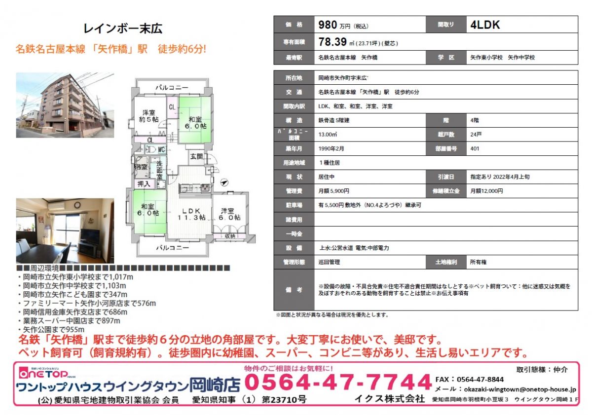 安城市 岡崎市 豊田市 刈谷市 幸田町 不動産 不動産仲介 不動産会社 ワントップハウス 不動産仲介 不動産営業 不動産売却 不動産屋 ウイングタウン 土地 戸建 売買 売買物件 媒介 賃貸 新築 中古 築浅物件 土地探し 査定 土地購入 売却相談 相談無料 老人ホーム相談 手数料無料 岡崎市土地紹介 岡崎市不動産 岡崎市新築 建売 築浅 築浅物件 築浅マンション 岡崎市新築戸建 岡崎市新築戸建て 岡崎市中古戸建 岡崎市中古戸建て 岡崎市中古マンション レインズ末広 矢作東小学校 矢作中学校 名鉄名古屋本線 矢作橋駅