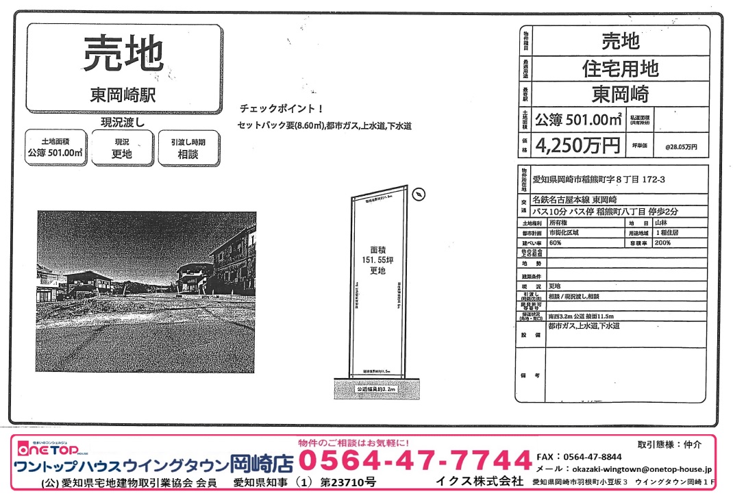 ◆名鉄名古屋本線「東岡崎」駅バス乗車10分「稲熊町8丁目」停徒歩2分