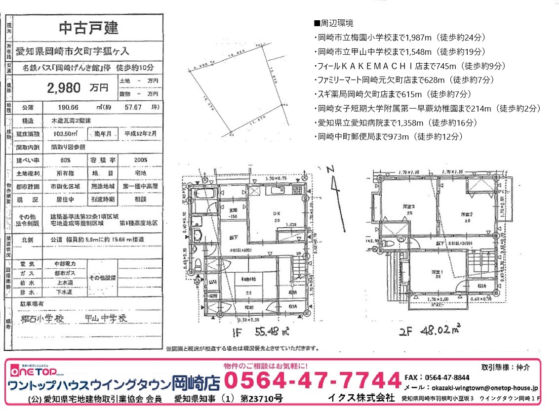 安城市 岡崎市 豊田市 刈谷市 幸田町 不動産 ワントップ ワントップハウス ウイングタウン 土地 戸建 売買 賃貸 新築 中古 査定 岡崎市欠町 中古戸建