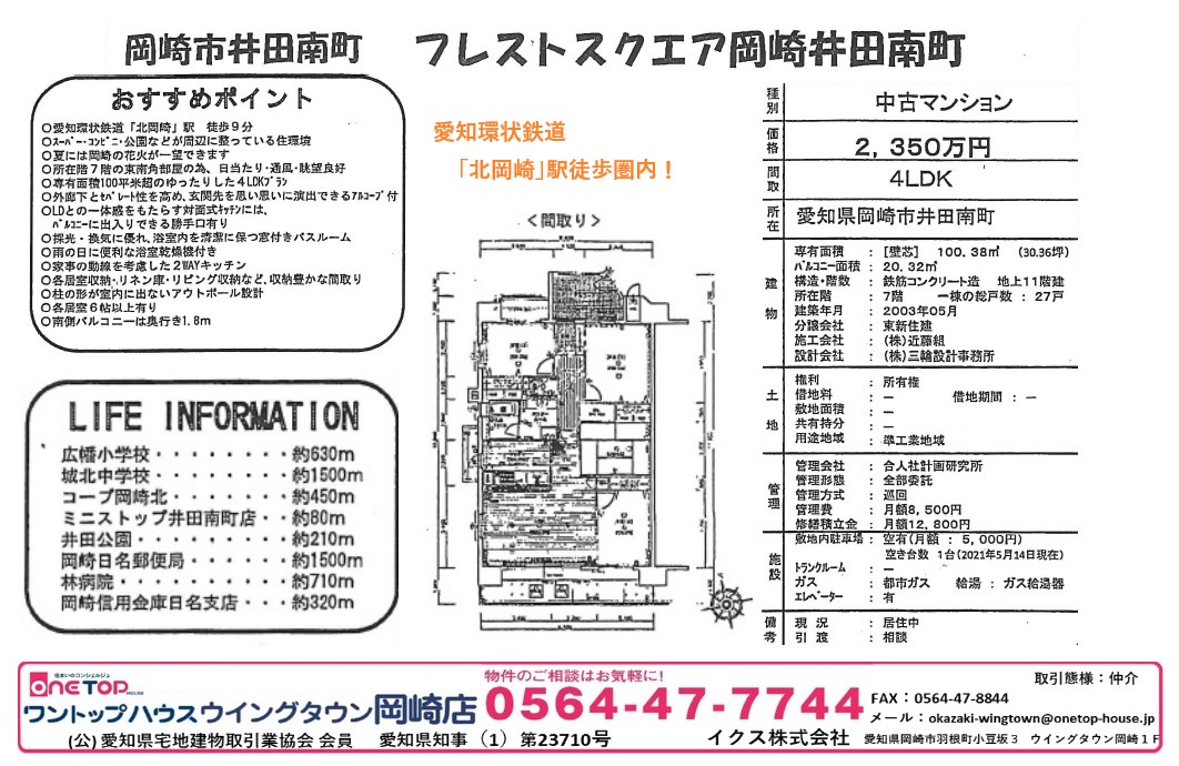 安城市 岡崎市 豊田市 刈谷市 幸田町 不動産 ワントップ ワントップハウス ウイングタウン 土地 戸建 売買 賃貸 新築 中古 査定 岡崎市中古マンション