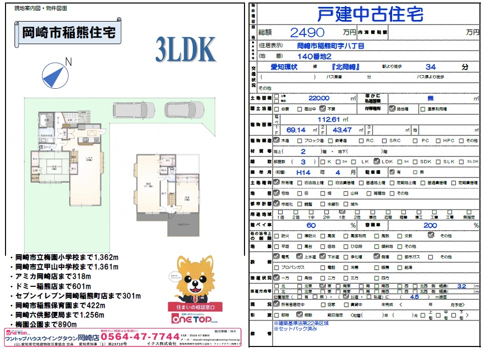 岡崎市稲熊町中古戸建 愛知環状鉄道線 北岡崎駅 梅園小学校 甲山中学校