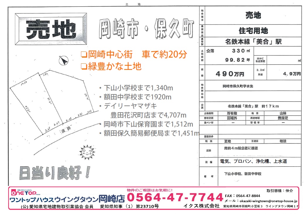 今回ご紹介するのは、岡崎市保久町にある売土地です。
