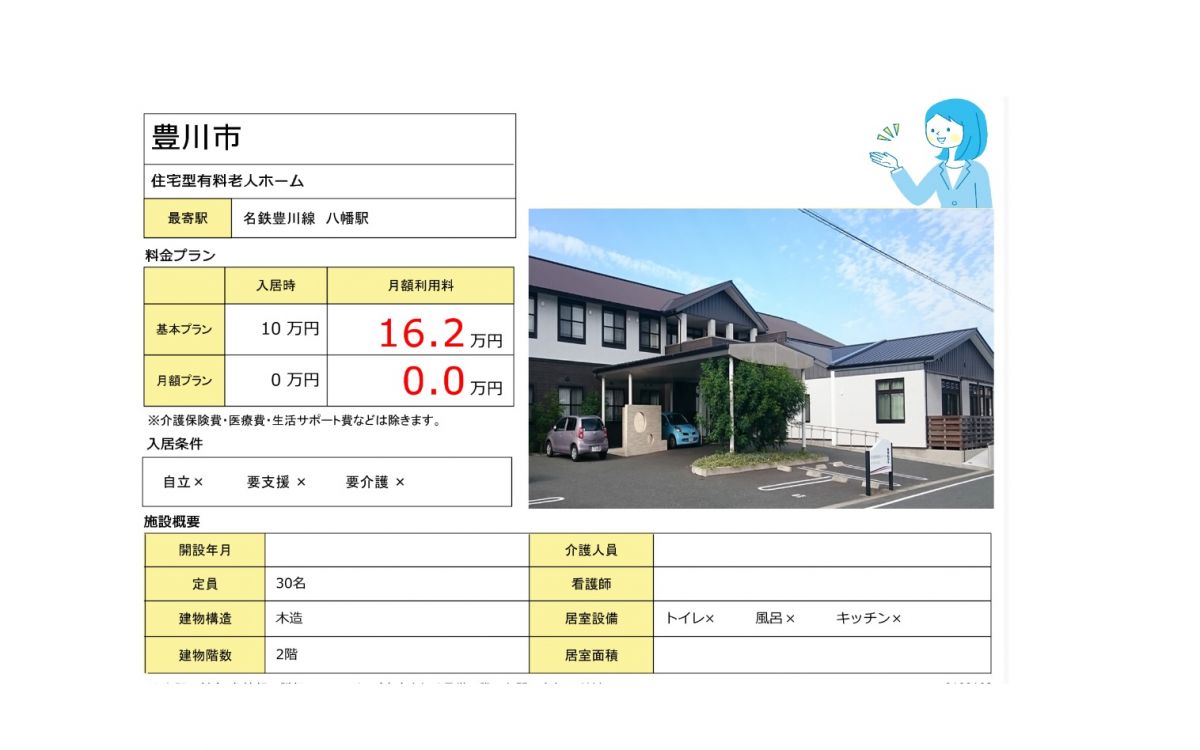 今回ご紹介するのは、豊川市の【住宅型有料老人ホーム】施設です