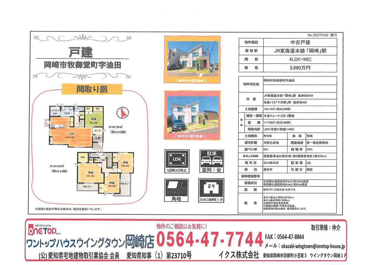 ワントップハウスウイングタウン岡崎店より中古戸建のご紹介です!