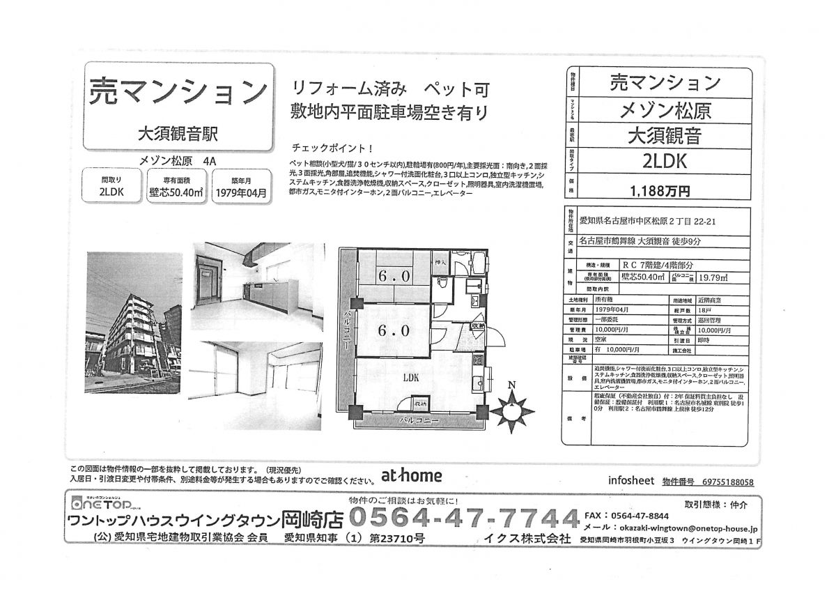 ワントップハウスウイングタウン岡崎店からリフォーム済みマンション・価格改定のご紹介です。