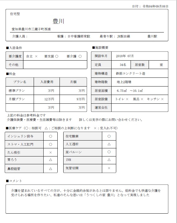 今回ご紹介するのは、豊川市の【住宅型有料老人ホーム】施設です