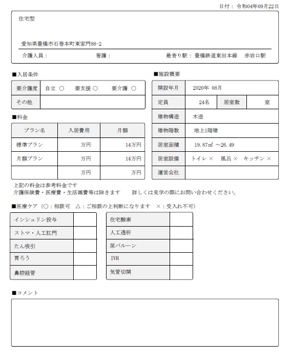 今回ご紹介するのは、豊橋市の【住宅型有料老人ホーム】施設です
