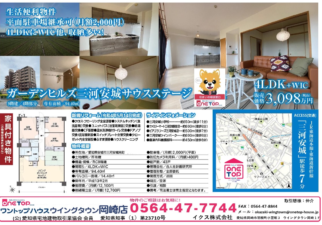 ワントップハウスウイングタウン岡崎店より中古マンションのご紹介です!