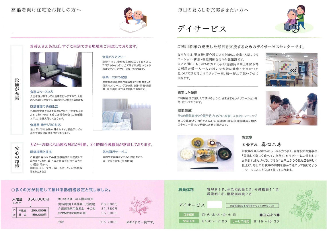 全室二人部屋、全18戸のアットホームな住宅型有料老人ホームです。居室は全室個室と快適にお過ごしいただけます。介護職員も常駐しており、安心です。定期的に季節のイベントやレクリエーションを開催しております。デイサービス併設で、メリハリのある日々をお送りいただけます。