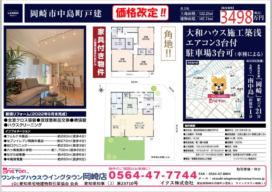 ワントップハウスウイングタウン岡崎店より【価格改定】のご紹介です!