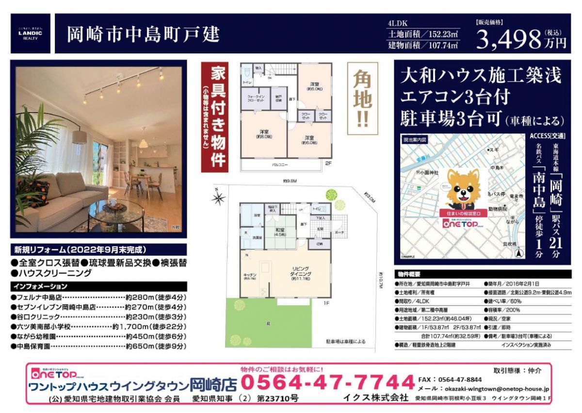ワントップハウスウイングタウン岡崎店より中古住宅物件のご紹介です!