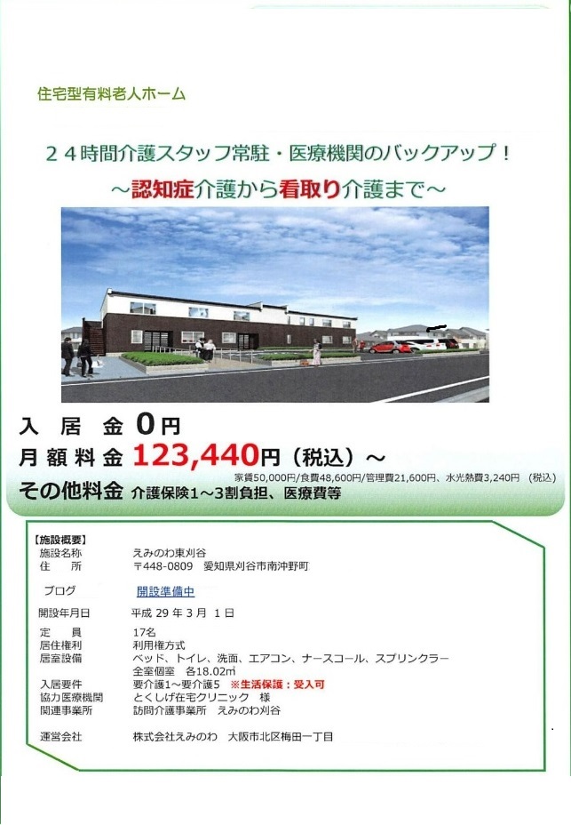 今回ご紹介するのは、刈谷市南沖野町の【住宅型有料老人ホーム】施設です
