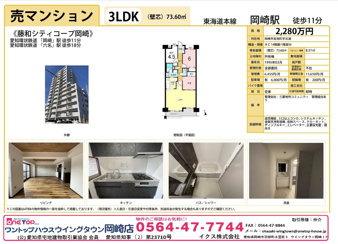 ワントップハウスウイングタウン岡崎店より【新着物件】のご紹介です!