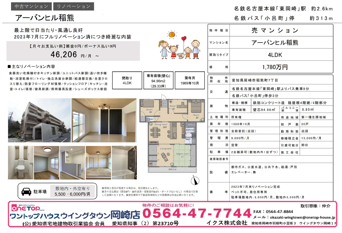 ワントップハウスウイングタウン岡崎店より新着物件のご紹介です!