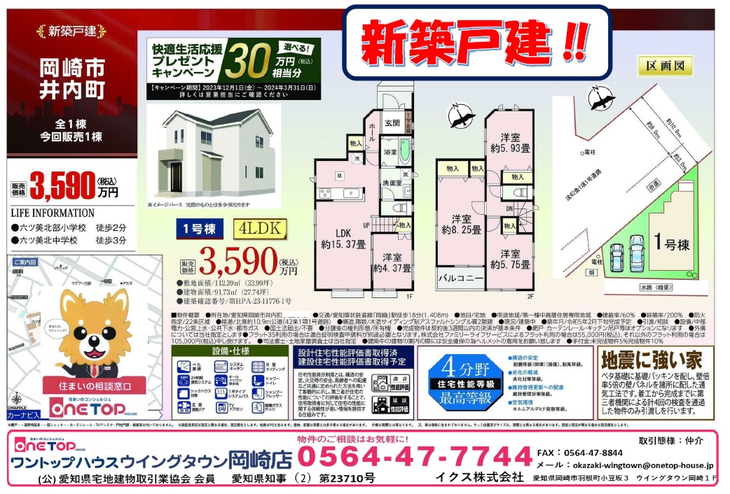 ワントップハウスウイングタウン岡崎店より新築戸建のご紹介です!