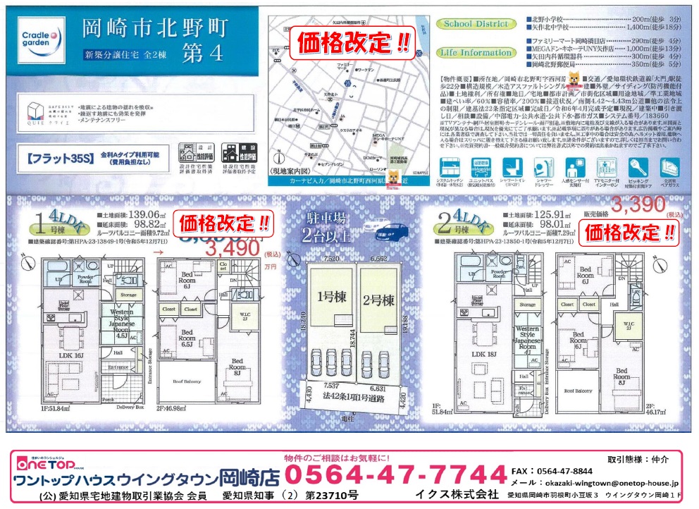・岡崎市北野町第4 全2棟 北野小学校・矢作北中学校区
