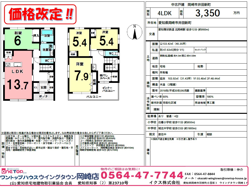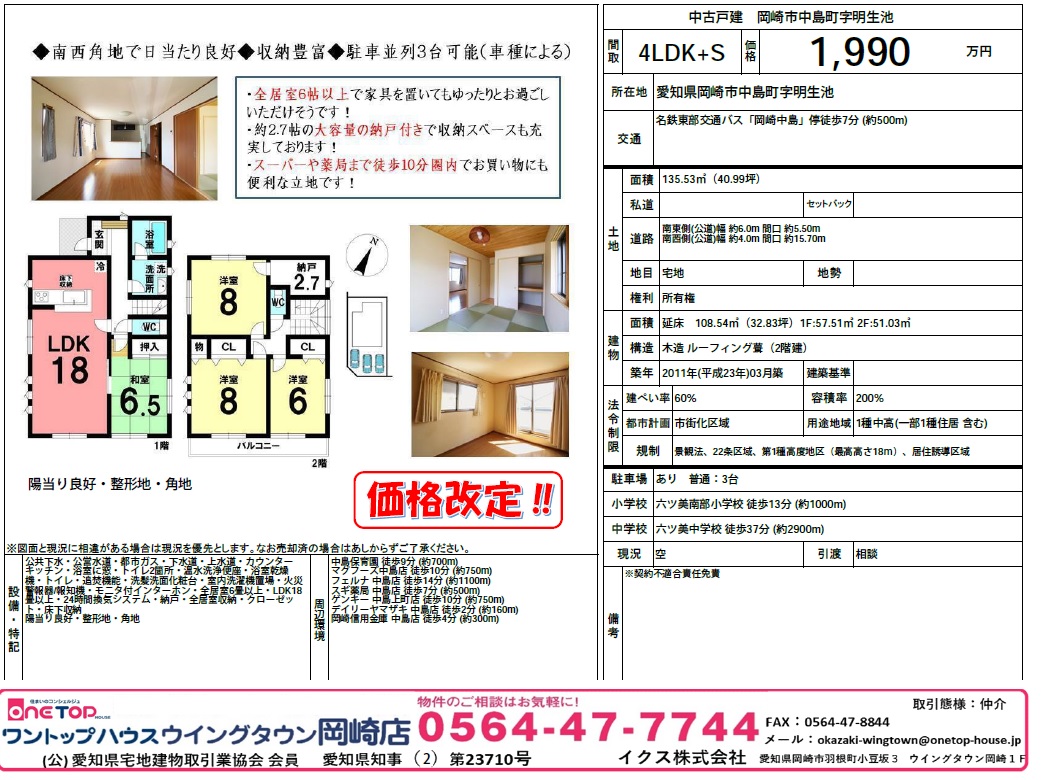 ワントップハウスウイン岡崎市井田新町グタウン岡崎店より価格改定のご紹介です!