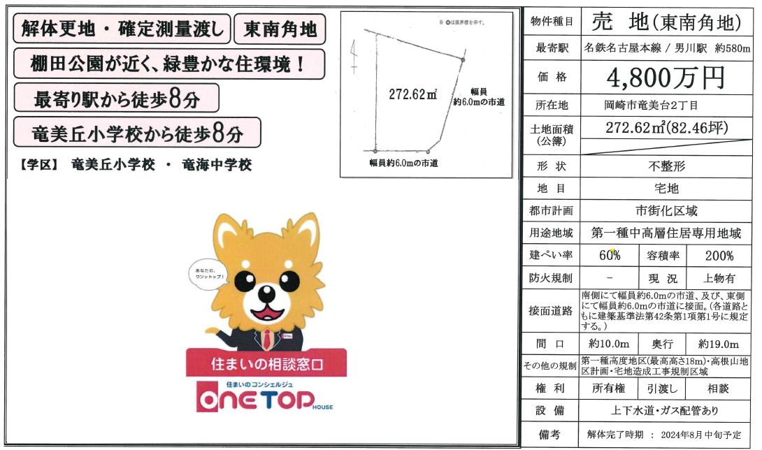 【売土地】岡崎市竜美台2丁目 4,800万円