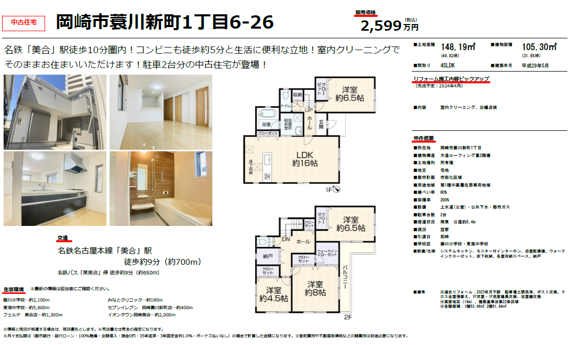 【売戸建】岡崎市蓑川新町 2,599万円