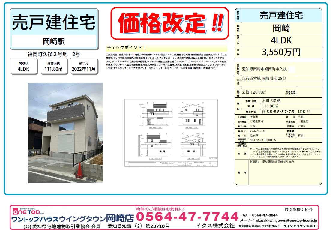 【価格改定】 【売戸建】岡崎市福岡町 3,550万円